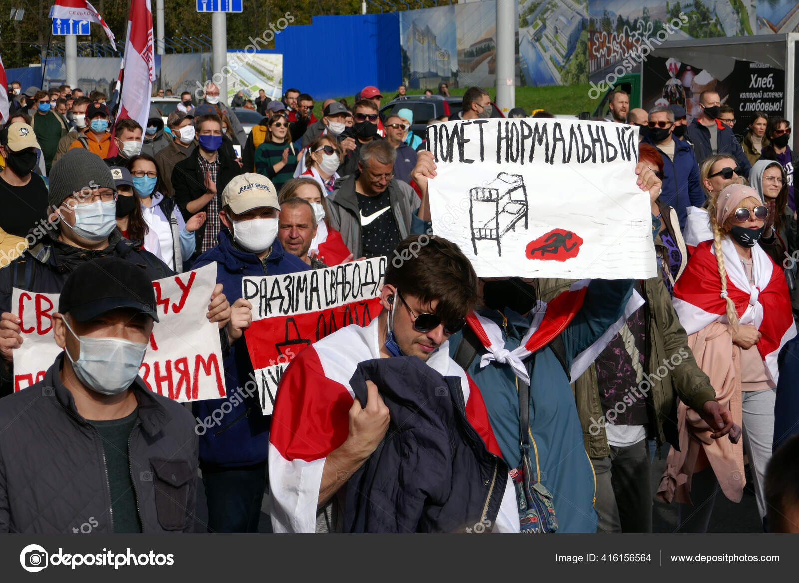 Фотографию "Минск, Беларусь - 04 октября 2020 года. Марш за освобождение политических заключенных. Протестующие вышли на улицы Минска с плакатами и флагами." можно использовать в личных целях согласно условий купленной/приобретенной Royalty-free лицензии. Изображение доступно для скачивания в высоком качестве с разрешением до 4629x3086.
